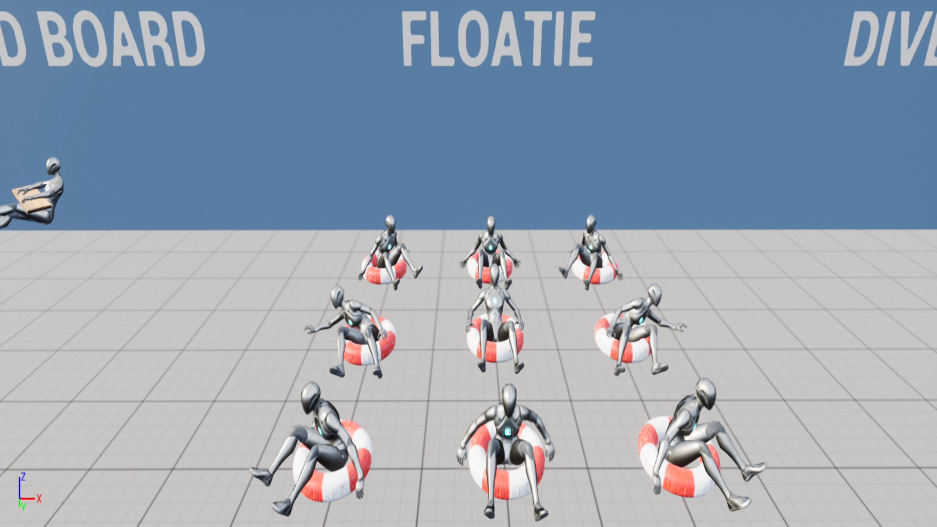 - Floatie (floating with a swim ring)
